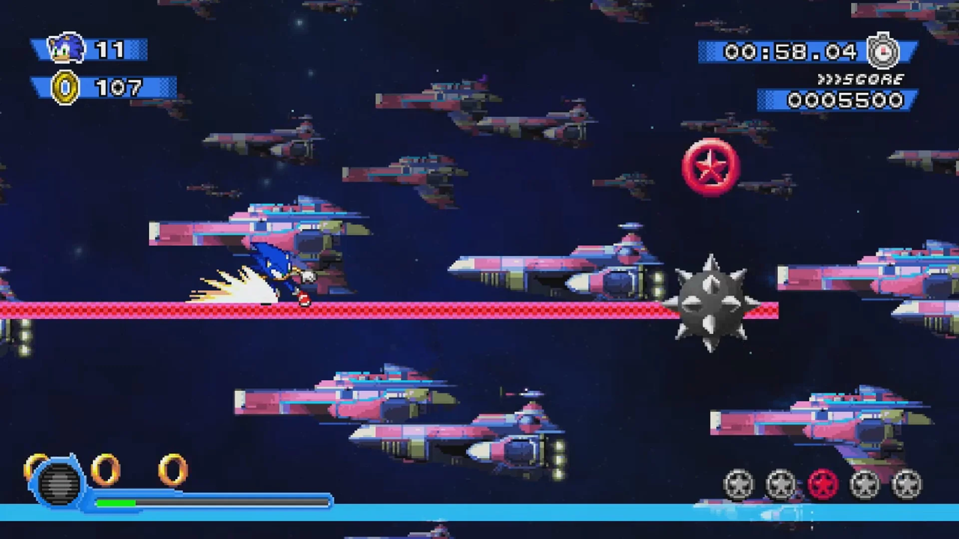 Sonic Colors Demastered is not a straight 2D port of the Wii game. Randomocity Gaming took the thematic identity of Sonic Colors — its zones, wisps, and colorful aesthetic — and rebuilt everything on top of Sonic Rush gameplay mechanics. The boost system, the grind rails, the homing attack chains: they all feel tuned for fast, fluid 2D platforming rather than trying to compress a 3D experience into two dimensions.All 6 Wisp Color Powers