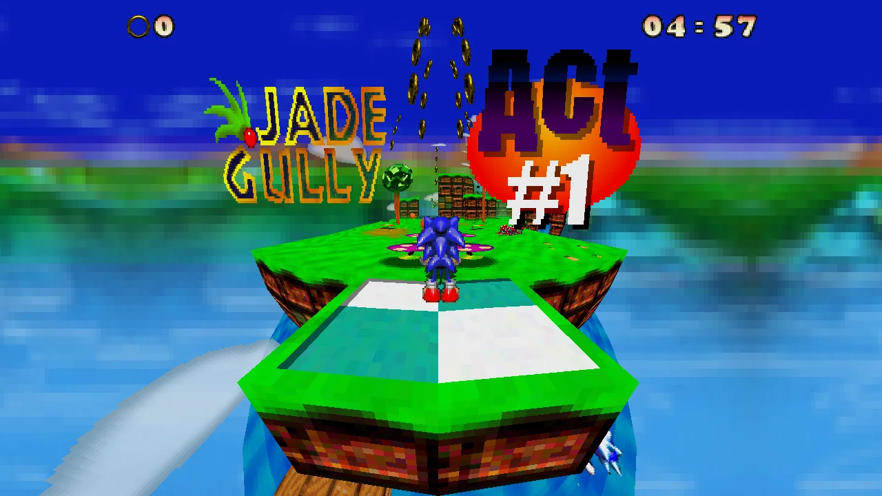 Controls include a dedicated spin dash for building speed and a separate spin attack for taking out enemies. The physics are intentionally slippery, faithful to how the original Saturn game would have handled. Rings, extra lives, and invincibility power-ups are scattered across all four zones, and each level hides multiple paths worth exploring.